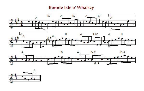 "Bonnie Isle o' Whalsay" is a Shetland reel in A Major ('A' part) and