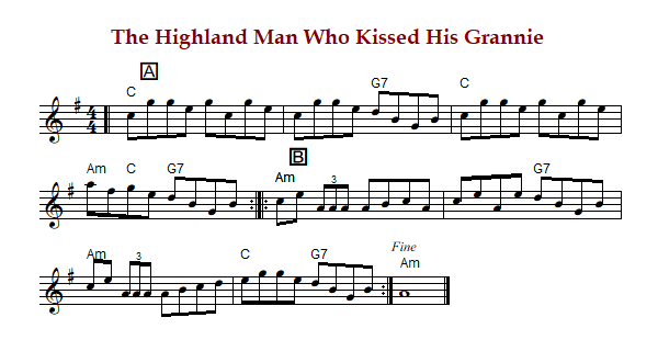 "The Highland Man that Kissed His Grannie" is a member of a large and rather amorphous tune family in