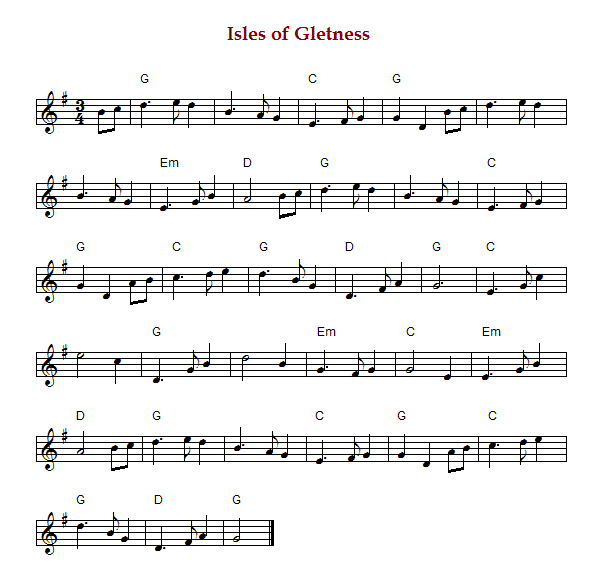 "Isles of Gletness" is a Scottish waltz found in a manuscript collection now called