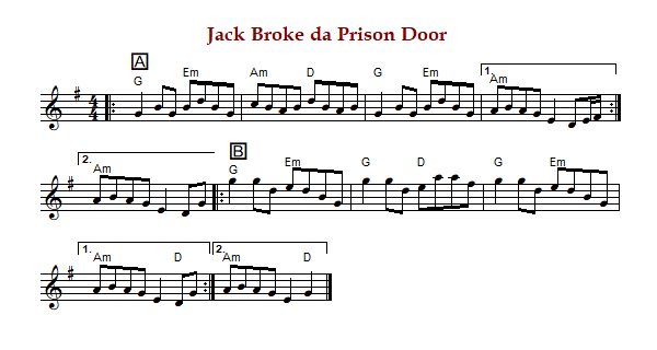 "Johnnie Brook da Prison Door" is a Shetland reel in 4/4 time and G Major.