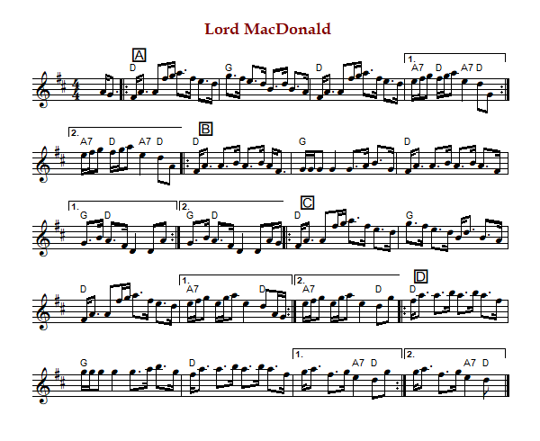 strathspey or reel in D Major. The parts are played AB (Surenne) or