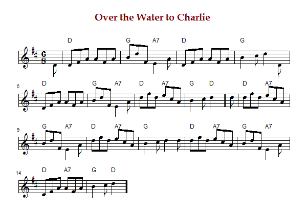 "Over the Water to Charlie" is a Scottish Jacobite song in 6/8 time and D major.