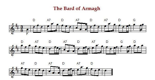 "The Bard of Armagh", also known as "Phelim Brady" is an Irish air in 3/8 time and D Major. It is