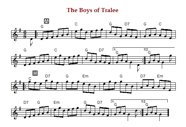 "The Boys of Tralee", also known as "Katie's Fancy" is an Irish double jig in 6/8
