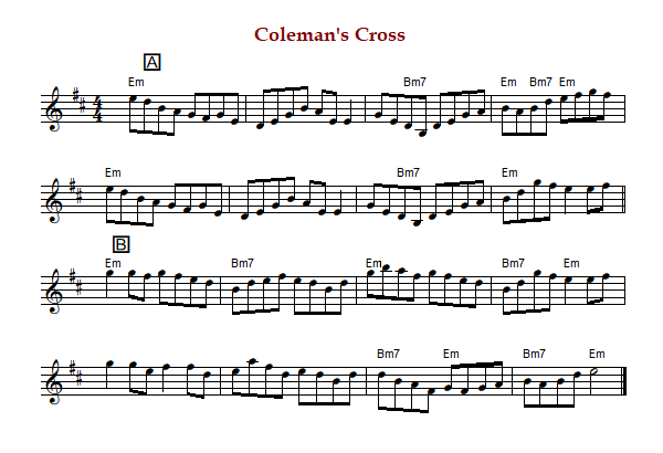 The name "Coleman's Cross" was applied to this reel on New York fiddler