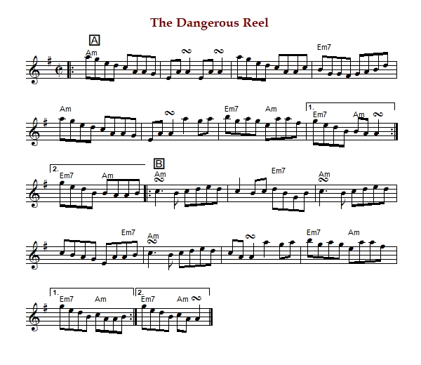 or "The Dangerous" is an Irish reel in A Dorian. The parts are played AA'BB'.