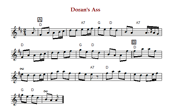"Doran's Ass", also known as "Finnegan's Wake" or "Paddy Doyle's Ass" is an Irish and