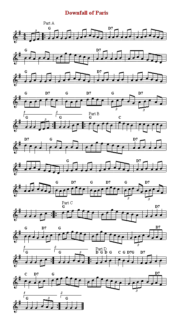 its military connotations, the dance tune "Downfall of Paris"