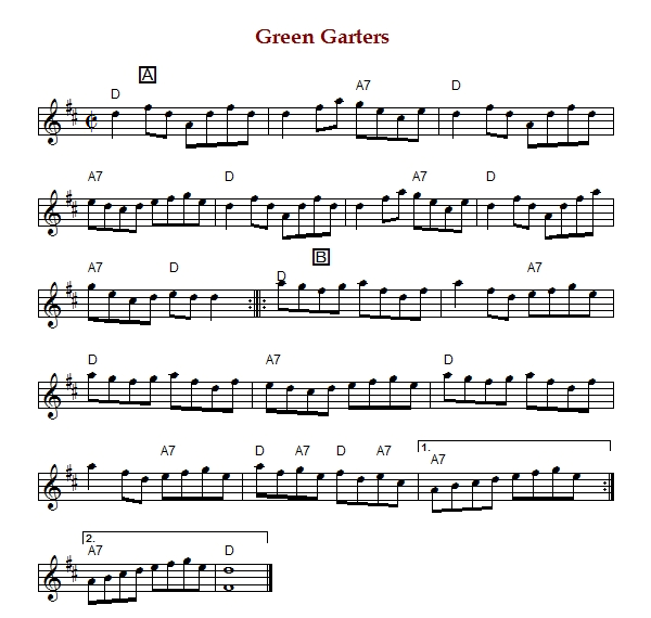"Green Garters" (in Gaelic "Crioscosa Glais"), also known as "Geehan's Reel",