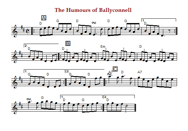 "The Humours of Ballyconnell", in Gaelic "Sugra Baile-Ata-Conaill" or