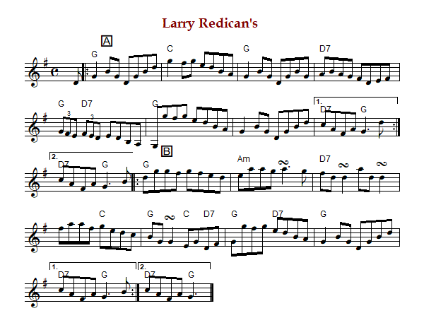 "Redican's Reel" is an Irish-American reel in G Major (Flahery, Miller, Mulvihill/Mulvihill) or