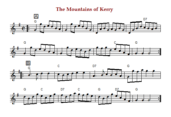 "The Mountains of Kerry", in Gaelic "Sleibte {Na} Ciarraige", also known