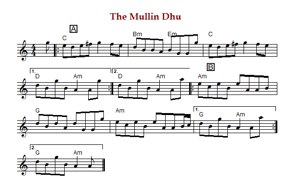"The Mullin Dhu", in Gaelic "Muileann Dubh" ("The Black Mill"), is also known as