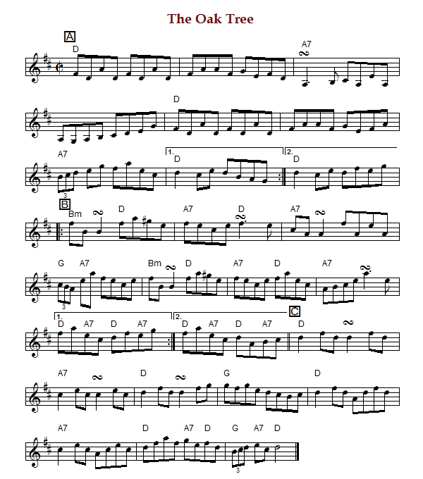 from County Donegal in D Major ('A' and 'C' parts), B Dorian ('B' part).