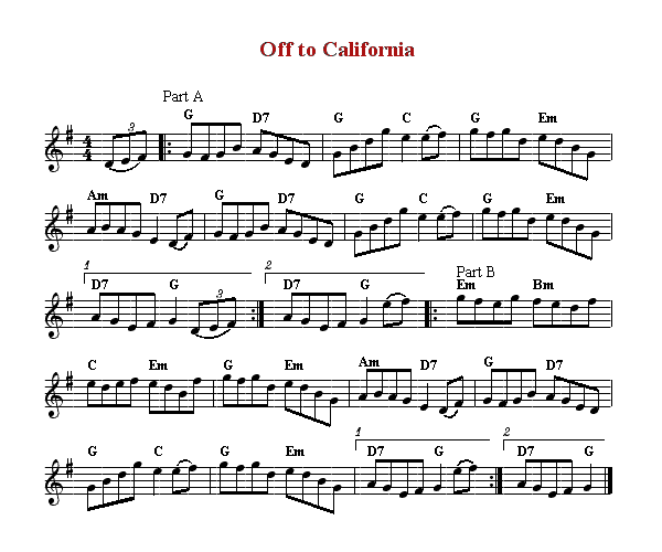 Also known as "Bound For California", "The Fireman’s Reel",