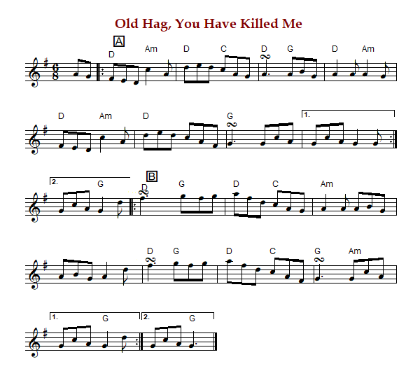 Have Killed Me" or "Stop old hag or you’ll kill me" is an Irish double jig in 6/8 time and