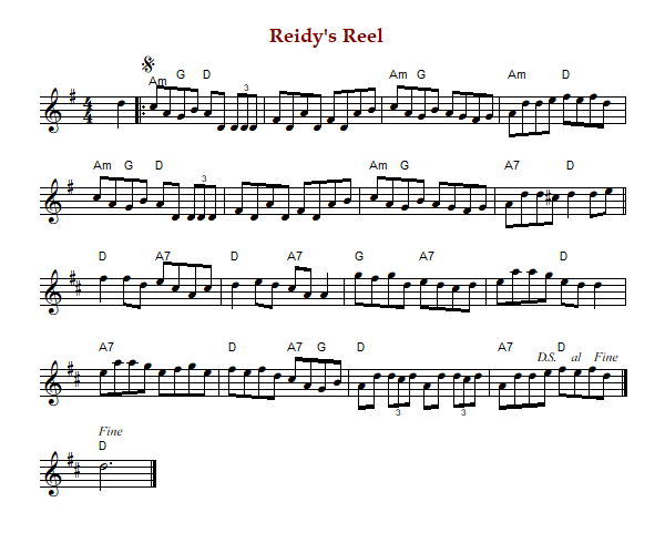 "Reidy's Reel" is an Irish reel in D Mixolydian (‘A’ part) & D Major (‘B’ part).
