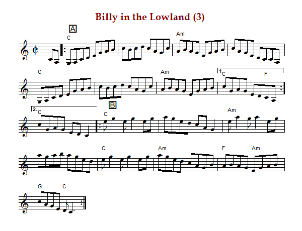 "Billy in the Lowland (1)" is a G major version that someone transposed from C major.