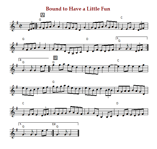 "Bound to Have a Little Fun" is an old-time breakdown in G Major. The parts are played