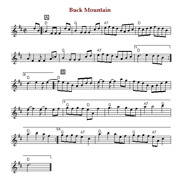"Buck Mountain" is an American reel in D Major. The parts are played AABB'