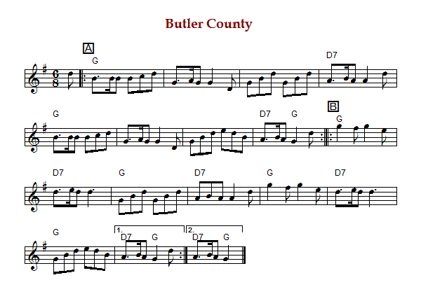 "Butler County", also known as "Perry's Victory" is an American jig or march in G and 6/8