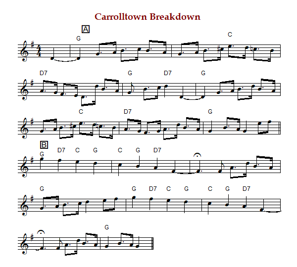 "Carrolltown Breakdown", also known as "Silver Lake" is an American reel in G Major.