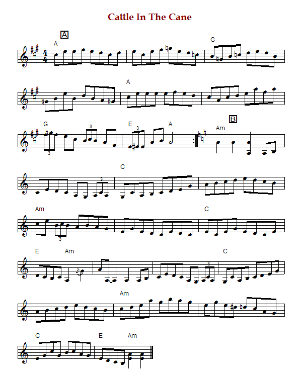 from Texas in A Mixolydian ('A' part) & A Aeolian ('B' part). The parts are played AABB (Brody) or