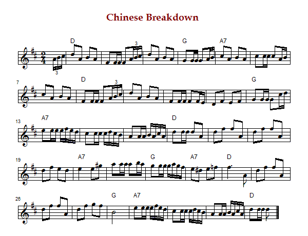 "Chinese Breakdown" was first recorded by the "Dixie String Band" in 1925