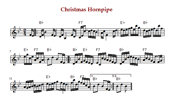 "Christmas Hornpipe" is an American hornpipe in the unusual key of B Flat Major. The parts are played
