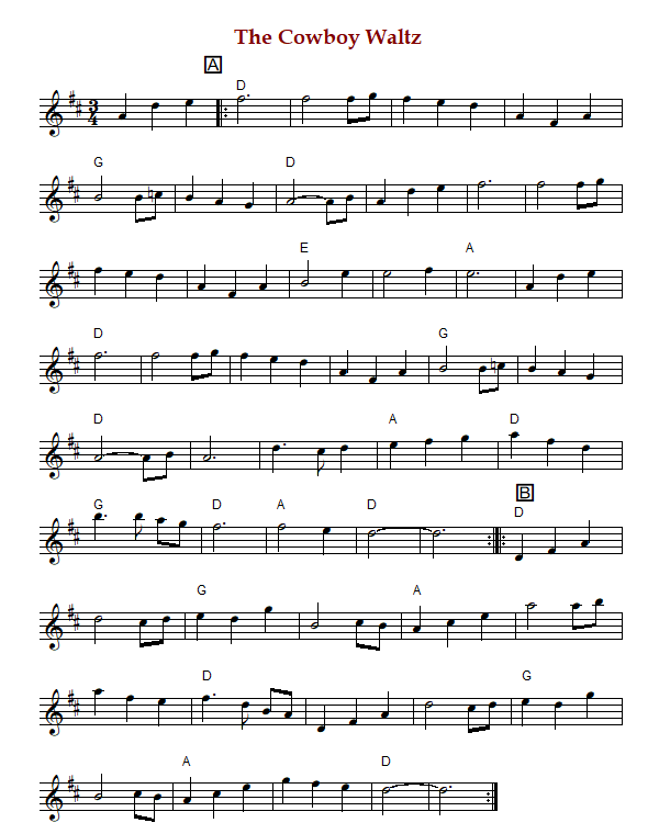 "Cowboy Waltz" is a traditional waltz known to a number of performers in G or D major.