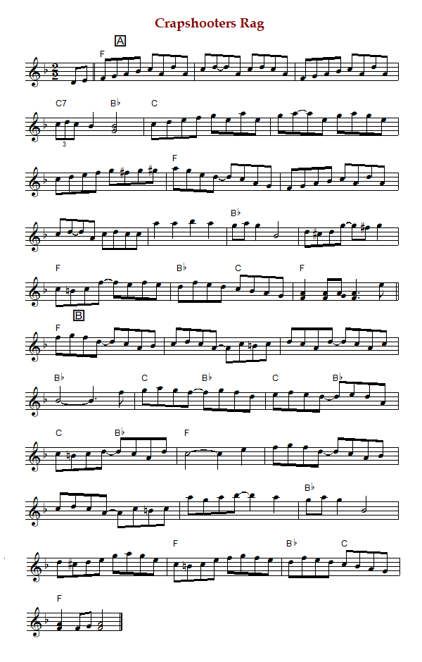"Crapshooter's Rag"s an old-time country rag from Texas in F Major (Christeson) or D Major