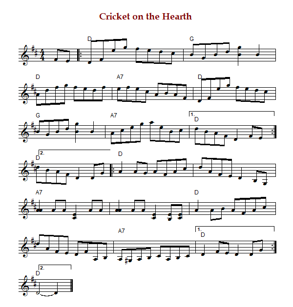 "Cricket on the Hearth" is an old-time or Bluegrass breakdown from Arkansas and east