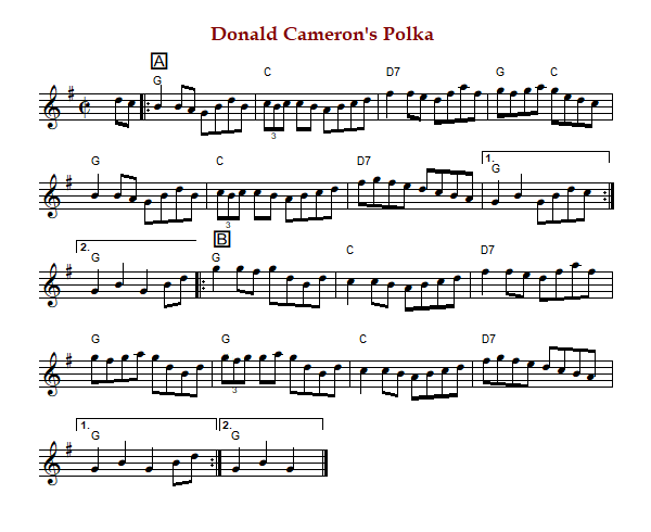 "Donald Cameron's Polka", also known as "Donald Cameron's Reel" is a Canadian polka or