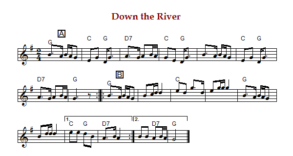 "Down the River" is a reel or breakdown known in southwestern PA where it was collected from