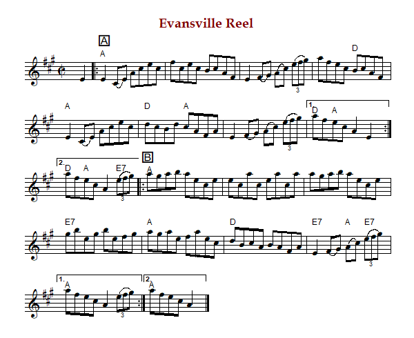 "Evansville Reel" is an American reel in A Major. The parts are played AABB.