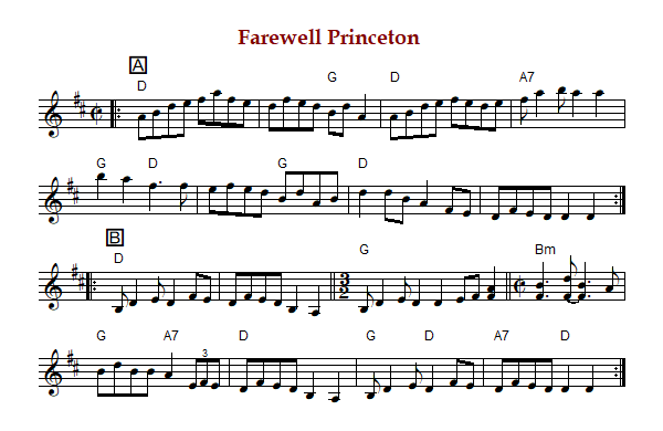 "Farewell Princeton" is an American reel or breakdown collected from the playing of