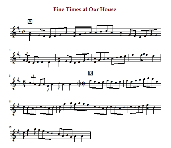 It is sometimes set in D Major/Mixolydian or A Mixolydian. The tune is crooked, having two