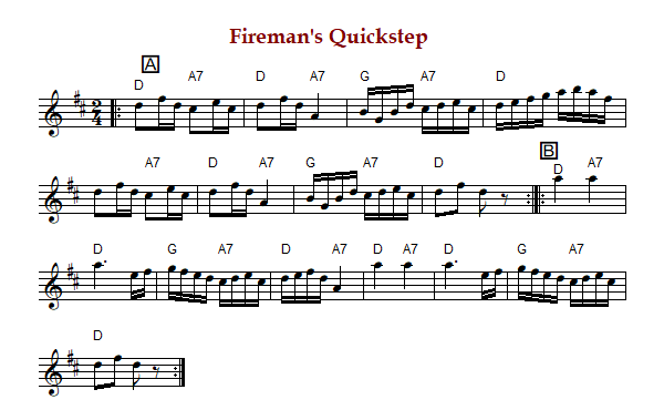"Fireman's Quickstep" is an American quickmarch in 2/4 time and D Major. The parts are