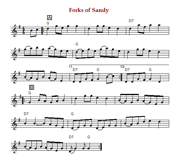 Also known as "Roll 'em Up Sandy", "Three Forks of Sandy",