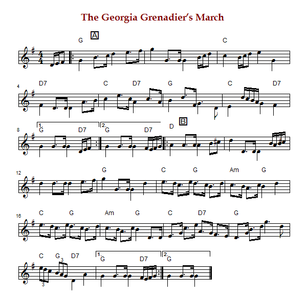 "The Georgia Grenadiers" is an American march in G Major. The parts ae played AABB.