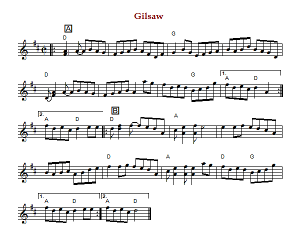 "Gilsaw", also known as "Gill Saw" is an old-time breakdown in D Major.