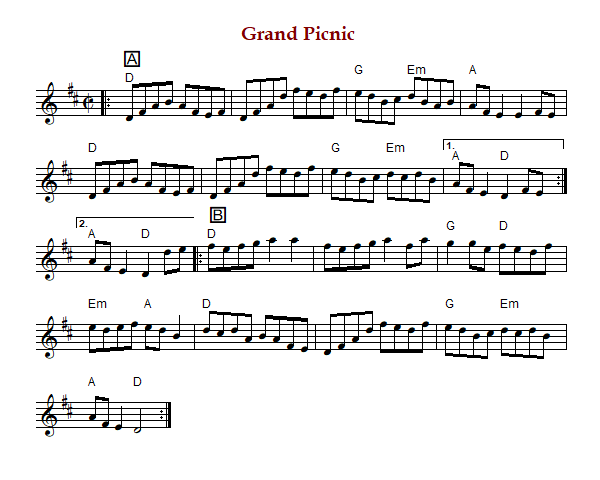 "Grand Picnic" is an old-time breakdown or reel in D Major.
