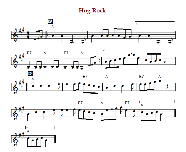 "Hog Rock" is an old-time breakdown from southwestern Pa. in A Major.