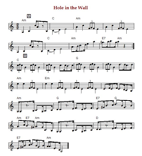 This tune is not related to the "Hole in the Wall" tune that is included in The Dancing Master.