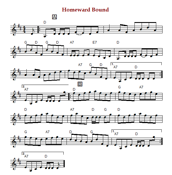 "Homeward Bound" is a Canadian reel known in Canada and Prince Edward Island in D Major.