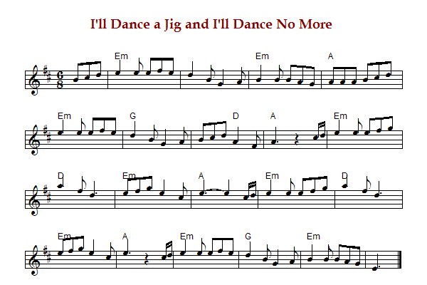"I'll Dance a Jig and I'll Dance No More" is an American jig in E Dorian.