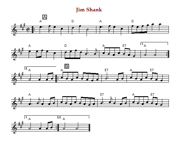 "Jim Shank", also known as "Jimmy Shenk" or "Jimmy Shanks" is an American reel in