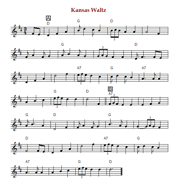 "Kansas Waltz" is an American waltz in D major. The parts are played AB.