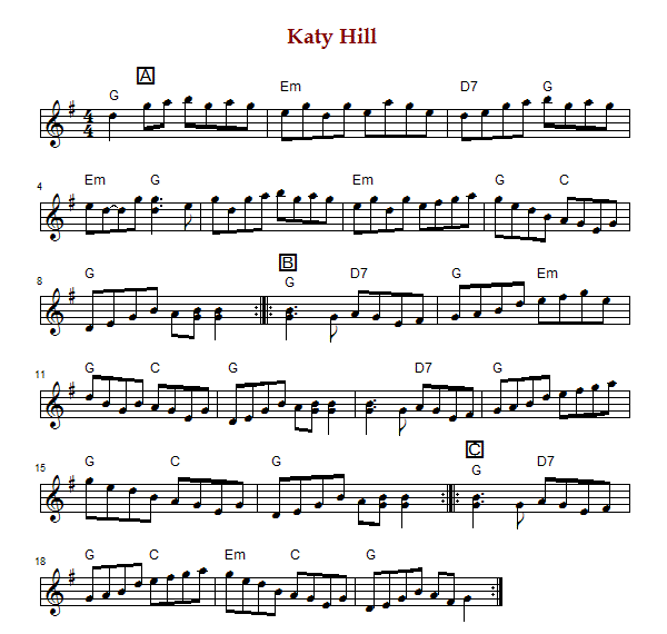 "Katy Hill", also known as "Trap Hill Tune" is an old-time and Bluegrass breakdown from Virginia,