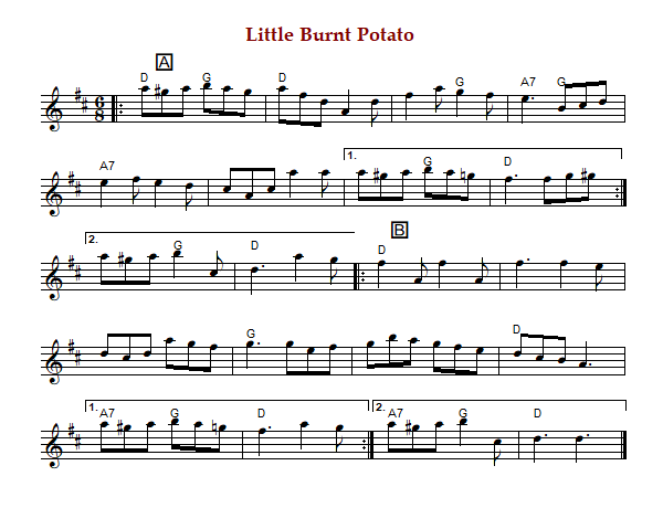 Canadian, American, English, Irish jig in D Major. The parts are played AB (Begin),